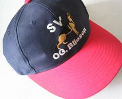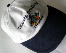 Ich sticke Logos, Schriftzüge und Namen auf Kappen, T-Shirts und alle Arten von Textilien.